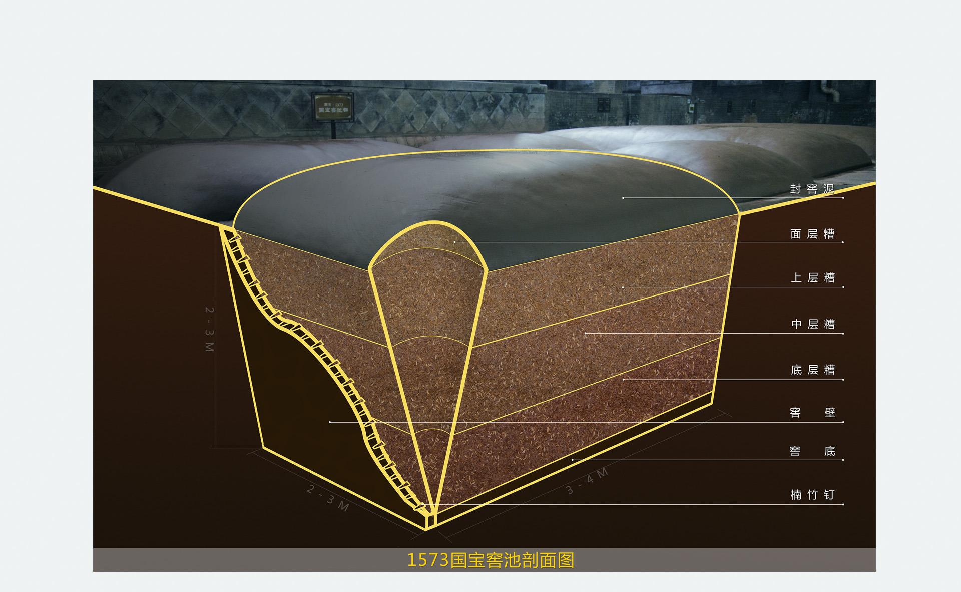 自公元1573年(明朝万历年间)起持续酿造至今,452年从未间断的1573国宝窖池群,是我国现存建造早、持续使用时间长、保存完整的国宝活文物窖池,是与都江堰并存于世的“活文物”。