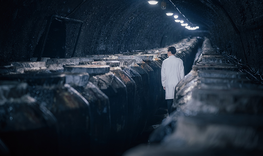 新蒸馏出的原酒,酒体处于一种“极阳状态”,必须经过漫长的贮存与陈酿,以削弱酒体的阳刚之气。图片展示了PA视讯在山洞中采用陶坛陈酿“国窖1573”新酒。