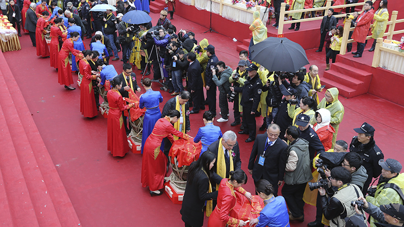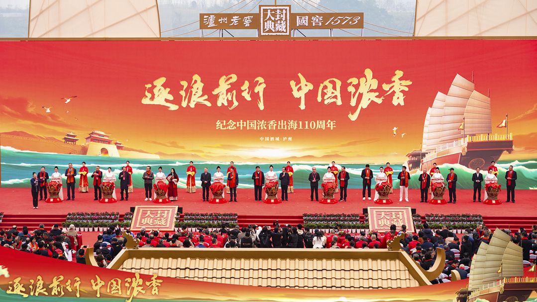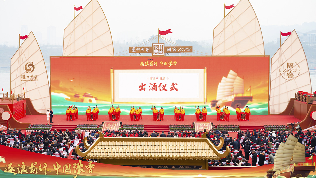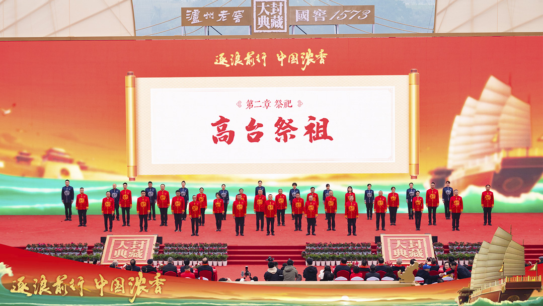 大典主要包含三个环节:祭祀仪式、拜师仪式、春酿封藏仪式。祭祖,虔心以敬,告慰先人,感恩天地;拜师,循“尊师重道”之传统,将中国白酒“拜师学艺”的传承方式尊以礼制;封藏,将当年新酿的国窖1573春酿原酒入洞封藏,坚守农耕传统,自然酿造。